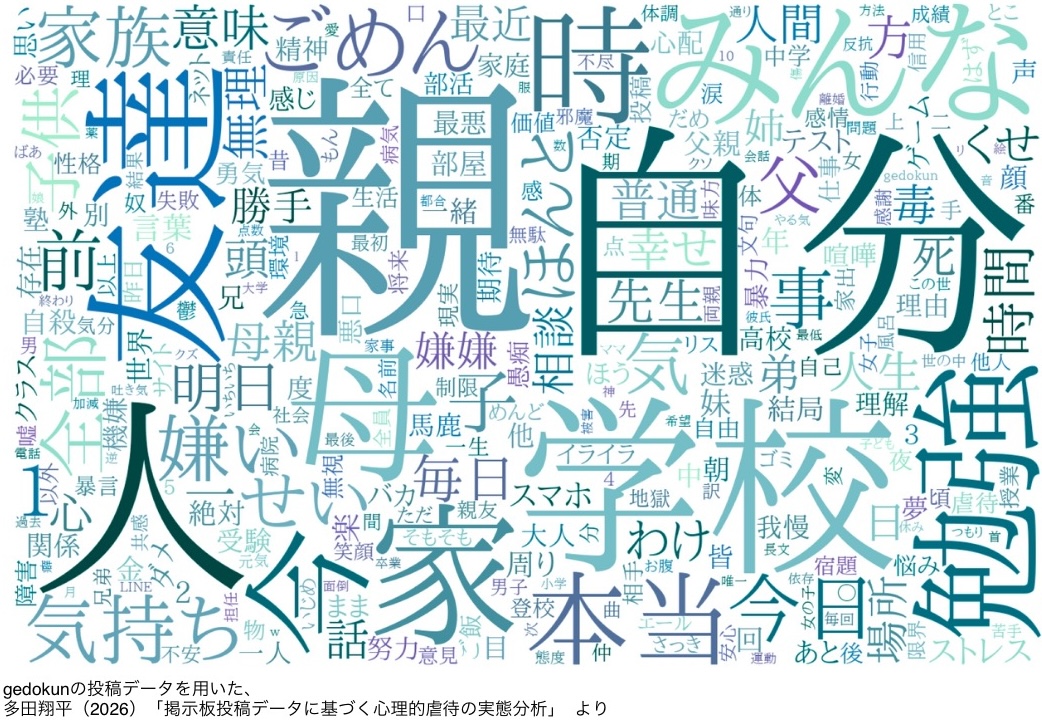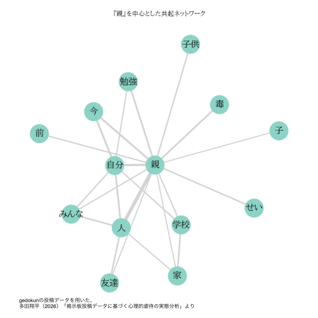 ※本分析結果は、多田翔平(2026)「掲示板投稿データに基づく心理的虐待の実態分析」 に基づくものである